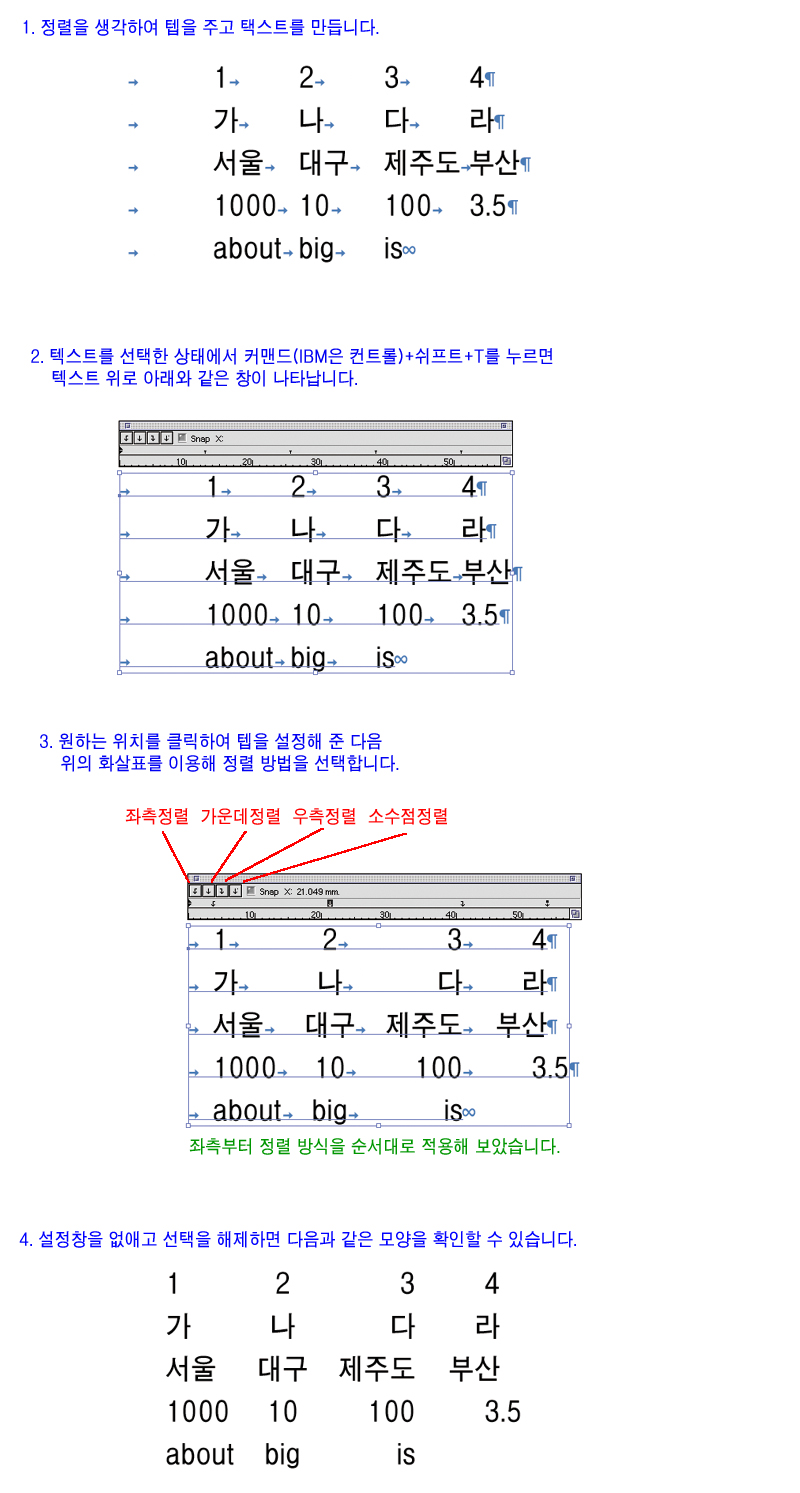 이런 탭. 행간, 정렬 이 먹히려면 택스트 아이콘을 누르시고 클릭하시면서 드래그를 하셔서 원하는 크기의 택스트 박스를 만드셔야지 제대로 행간과 탭이 적용됩니다.